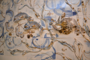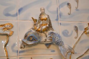 Wir entschieden uns dann, die Wände mit der geheimnisvollen Sagenwelt des Meeresgottes „Poseidon“ in Porzellankunst zu gestalten. Bei ihrem Preis Angebot habe ich mir die Ohren zu gehalten. Diesen Aufwand habe ich bis heute, fast 30 Jahre später, nicht bereut. Meine Gäste fragen mich heute noch immer, wie kann man auf diese Idee kommen. Mir war klar, dass das wirklich was Außergewöhnliches ist. (Text neu)